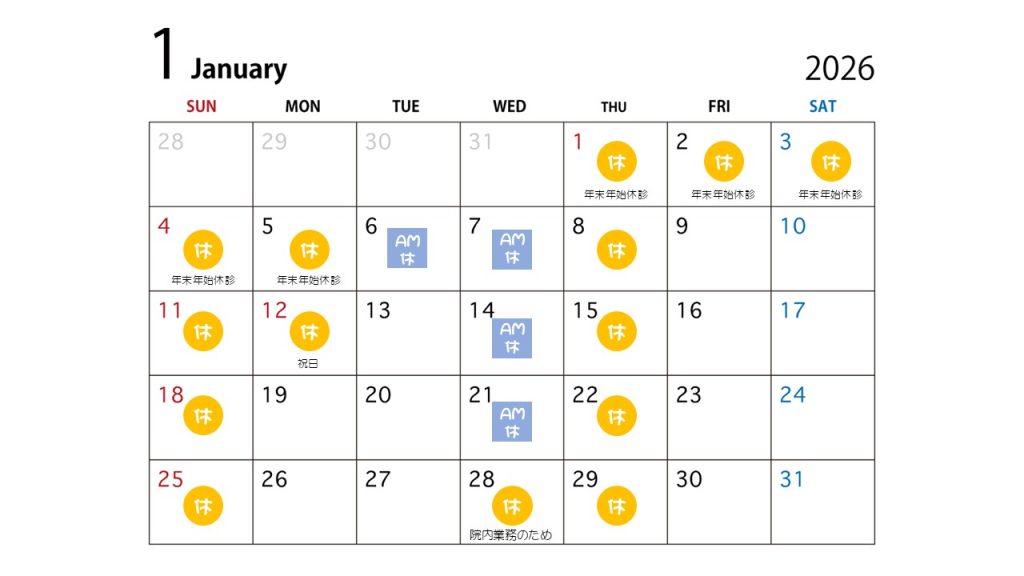 2026年1月休診日カレンダー